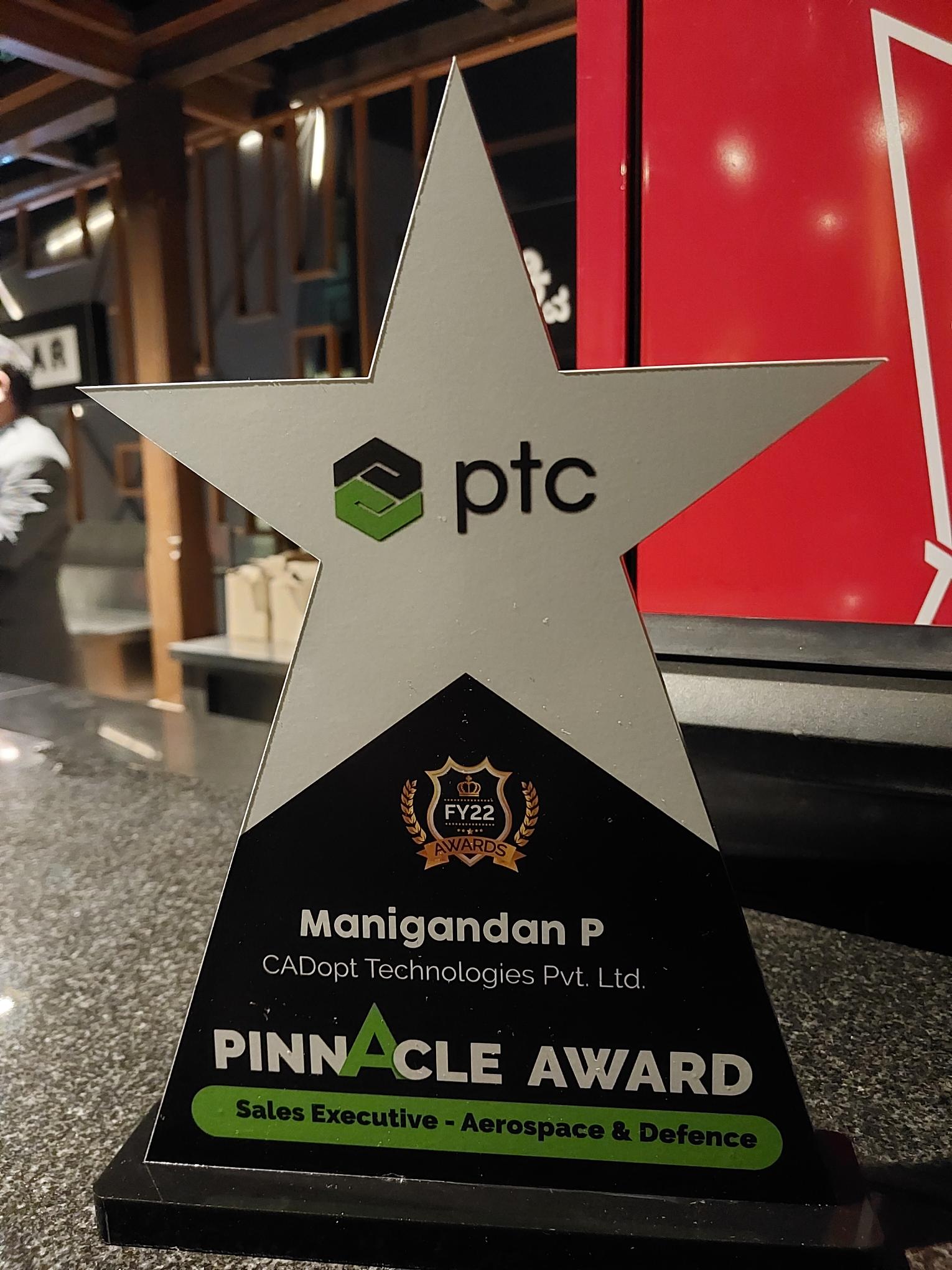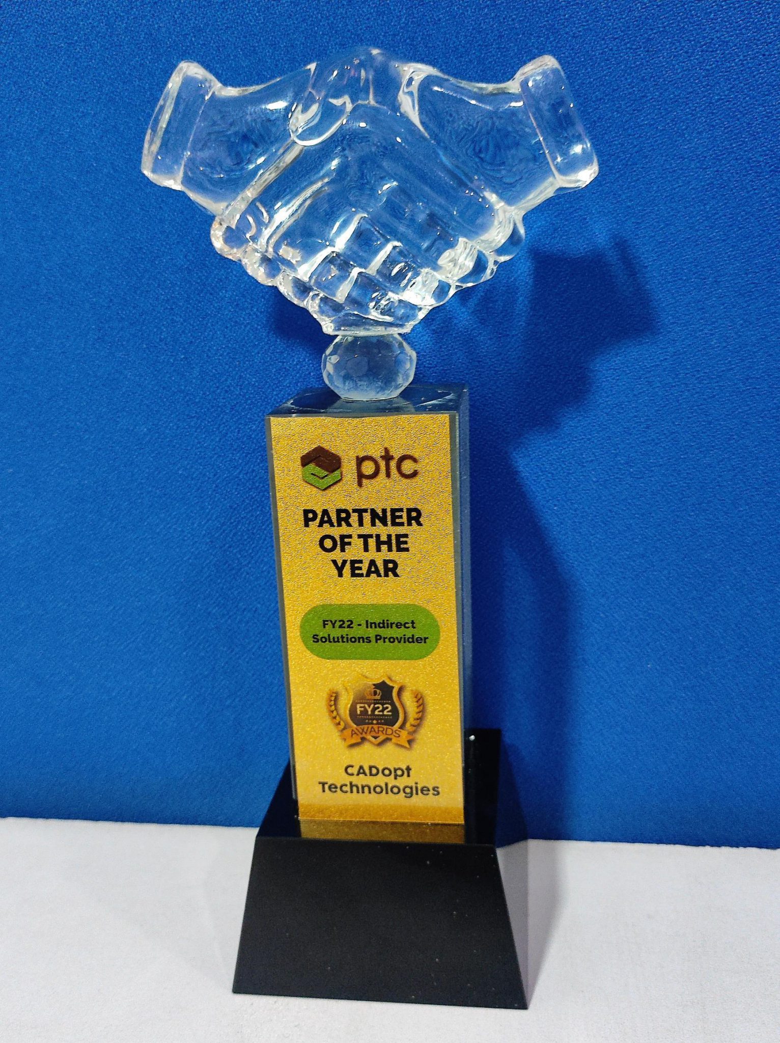We are thrilled to announce that we have been awarded by PTC as “Partner of the Year” (FY-22 Indirect Solutions Provider). We are incredibly happy to see PTC recognizing our sincere efforts in the business of technology solutions. Also, we are proud to announce that Manigandan P from CADOpt has received PinnAcle Award – Sales Executive (Aerospace and Defence). It is of course a great moment for us which would be remembered for long in the history of CADOpt Technologies Private Limited.